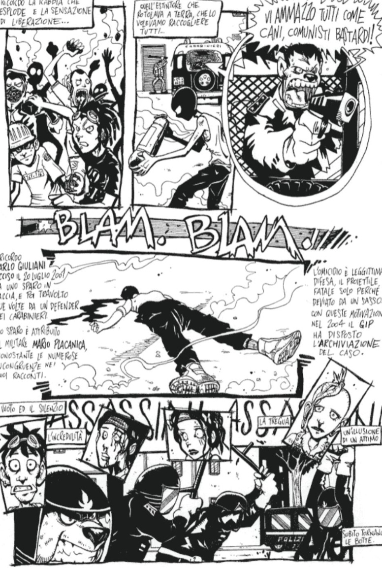 2004년에는 제 27회 G8정상회의반대 시위에 참가한 젊은이가카라비니에리 군에게 총살당한 것을 소재로La "nostra storia alla sbarra"(법정에 선 우리들의 이야기)라는 제목의 만화를 발표한다.