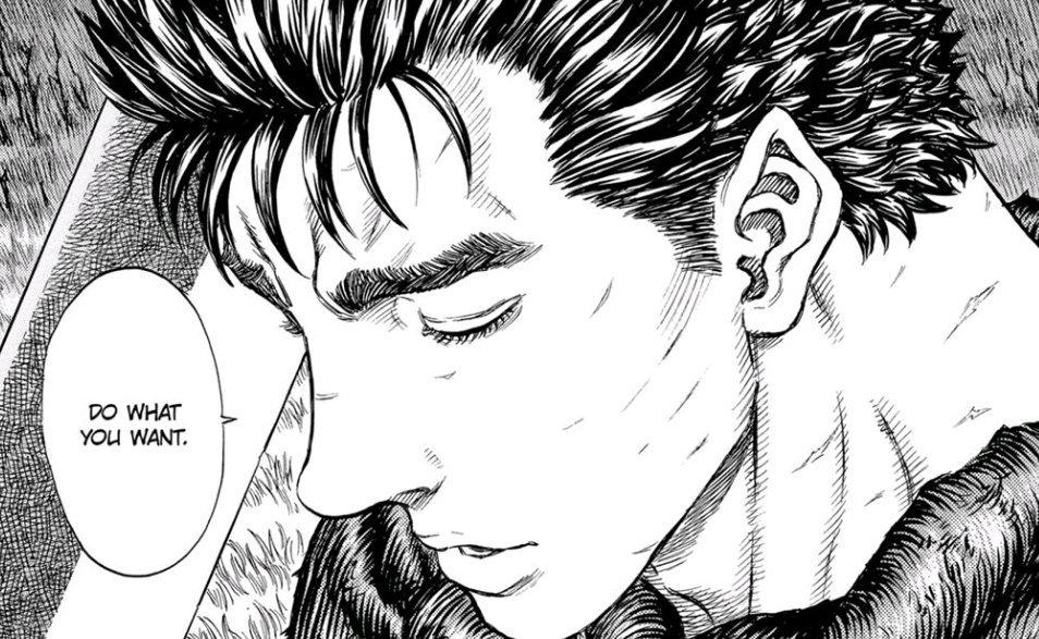그리피스와의 우정, 그리고 그의 배신으로 인한 절망적인 상황은 가츠를 나락으로 떨어뜨리는 결정적인 계기가 됩니다. 그는 사랑하는 사람들을 잃고, 육체적, 정신적으로 깊은 상처를 입은 채 복수의 화신으로 살아갑니다.