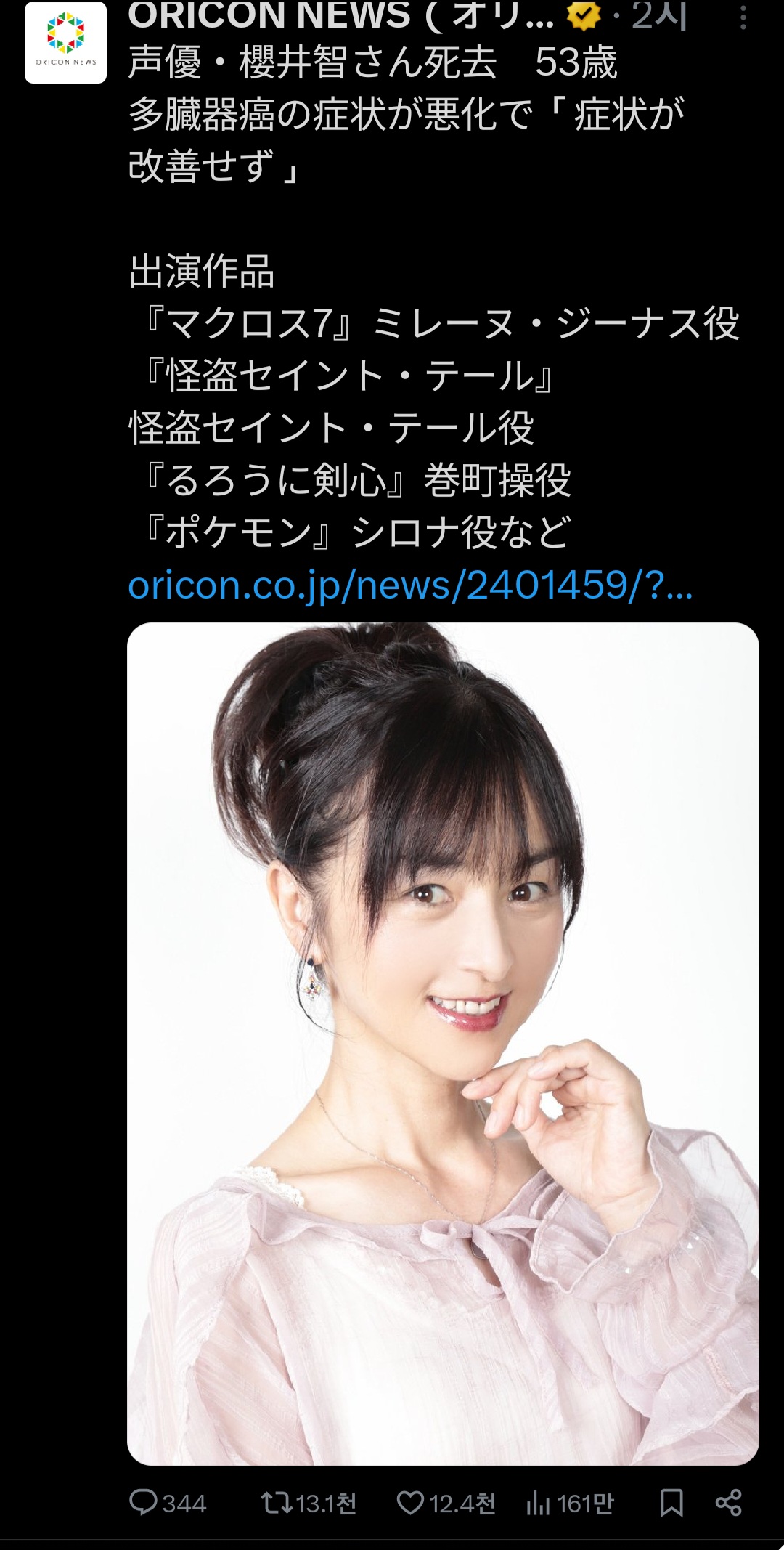 향년 53세라는 이른 나이에 우리 곁을 떠난 그녀의 부고는 많은 팬들에게 충격과 안타까움을 안겨주고 있는데요. 16일, 사쿠라이 씨의 공식 X(구 트위터)를 통해 이 소식이 공식적으로 알려졌습니다.